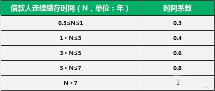 二、公积金贷款的额度 个人住房公积金贷款额度按照借款人的申请额和限额标准计算确定,在执行国家差别化信贷政策时按相关规定办理。 1、限额标准 住房公积金贷款额度的审批,应同时符合下列限额标准: (1)住房公积金贷款额度不高于住房公积金管理委员会批准的最高贷款限额; (2)住房公积金贷款额度不高于所购房产总价款规定的比例; (3)住房公积金贷款额度不高于按以下两个公式计算的最高限额。 2、计算公式 公式一:住房公积金贷款额度=借款人以及共同还款人住房公积金账户余额)×15; 公式二:住房公积金贷款额度=借款人可贷额度+共同还款人可贷额度 借款人或共同还款人公积金可贷额度=本人公积金月缴存基数(最近6个月正常缴存平均数)×12个月×贷款年限×60%×本人连续缴存时间系数。 注: (1)公积金月缴存基数=月缴存额/月缴存比例(济南公司月缴存比例一般在10%-24%之间)。 (2)缴存时间系数如下: (3)取两种算法额度高者为最终贷款金额,如上述两种算法金额都不足10万则最少可以贷十万; (4)如借款人已婚,夫妻双方都有公积金,计算贷款额度时两人需要选择同一种计算方式,贷款年限按照主借款人的来计算; (5)军人公积金借款,不同单位的审批额度不同,最高额度需要自己单位内申请; (6)如借款人配偶为现役军人,则借款人一人贷款上限根据两种公式计算后,最高可贷60万; (7)借款人月供不能超过收入的60%。 三、公积金贷款的年限 公积金贷款最长年限的确定条件如下: 1、 房龄+贷款年限≤50年; 2、 借款人申贷时年龄+贷款年限≤借款人法定退休年龄; 最大申贷年龄:男60周岁,女55周岁 法定退休年龄:男不得超过65周岁,女不得超过60周岁 3、 最长贷款年限不得超过30年。 以上三点同时满足时,以贷款年限最短的为准 |